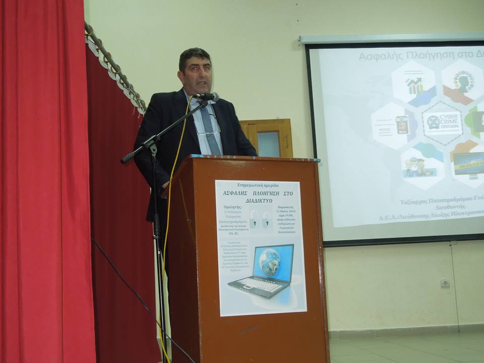 Με ιδιαίτερη επιτυχία ολοκληρώθηκε την Παρασκευή  11 Μαΐου  το απόγευμα , στο Καναλάκι , η προγραμματισμένη ημερίδα με τίτλο «ΑΣΦΑΛΗΣ ΠΛΟΗΓΗΣΗ ΣΤΟ ΔΙΑΔΙΚΤΥΟ» με κεντρικό ομιλητή τον Διευθυντή της Δίωξης Ηλεκτρονικού Εγκλήματος Ταξίαρχο, Γεώργιο Παπαπροδρόμου.