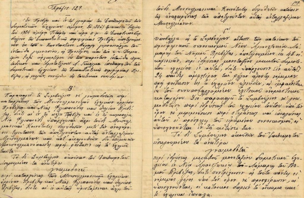Από το πλήθος των πληροφοριών που μπορούν να αντληθούν από το συγκεκριμένο αρχείο, θα αναφερθούμε ενδεικτικά μόνο σε μια κατηγορία, τις ιδρύσεις και καταργήσεις σχολείων που συνδέονται με μείζονα ιστορικά γεγονότα. Έτσι, θα σταθούμε σε δύο ιστορικές συγκυρίες. Πρώτον, στην ανταλλαγή των πληθυσμών μετά την Μικρασιατική Καταστροφή η οποία είχε ως αποτέλεσμα αφενός την κατάργηση των μουσουλμανικών σχολείων Πρέβεζας και Φιλιππιάδας, εφόσον οι οικογένειες που θα το τροφοδοτούσαν αποχώρησαν από την περιοχή, αφετέρου δε την ίδρυση νέου σχολείου στον προσφυγικό οικισμό του Νέου Αγιαντζικίου (δηλ. του σημερινού Αρχαγγέλου) καθώς σε αυτόν ζούσαν 24 παιδιά και των δύο φύλων που μπορούσαν να φοιτήσουν στο σχολείο. Οι πληροφορίες αυτές αντλούνται από τα πρακτικά της 30ης-7-1924 (εικ. 1). Αξίζει να επισημανθεί το γεγονός ότι από τα πρακτικά προκύπτει ότι η ίδρυση του σχολείου του Αρχαγγέλου εγκρίθηκε κατόπιν αίτησης των ίδιων των προσφύγων οι οποίοι μάλιστα υποσχέθηκαν να φροντίσουν για την στέγαση του σχολείου και την ανεύρεση των επίπλων.