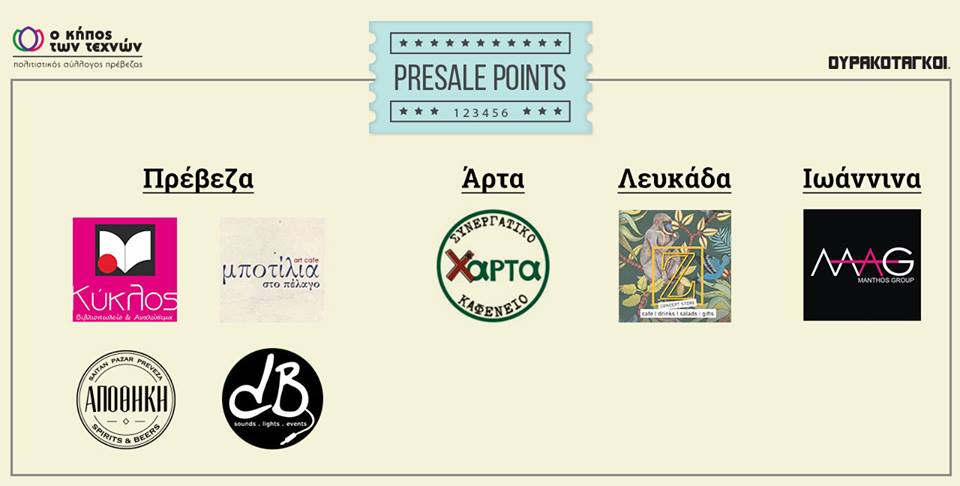 Τα τελικά σημεία προπώλησης για την μεγάλη συναυλία του Αλκίνοου Ιωαννιδη την Τρίτη 07 Αυγούστου στην Πρέβεζα (Αλκίνοος Ιωαννίδης Live l Τρίτη 7 Αυγούστου l Πρέβεζα). _Η προπώληση θα κρατήσει μέχρι την Τρίτη 07 Αυγούστου στις 12 το μεσημέρι στην Πρέβεζα και μέχρι την Δευτέρα 06 Αυγούστου στις 12 το μεσημέρι σε Λευκάδα – Άρτα και Γιάννενα _ #tickets #live #alkinoos_