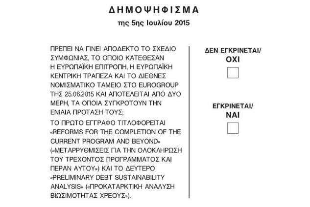 Έτσι, μέσα σε έναν «καυτό» Ιούνιο, όπου προτάσεις και αντι-προτάσεις πάνε κι έρχονται στο τραπέζι των διαπραγματεύσεων, η Ελλάδα δεν πληρώνει τη δόση στο ΔΝΤ ως όφειλε και ο λαός καλείται να πει αν συμφωνεί ή όχι με το «σχέδιο συμφωνίας, το οποίο κατέθεσαν η Ευρωπαϊκή Επιτροπή, η Ευρωπαϊκή Κεντρική Τράπεζα και το Διεθνές Νομισματικό Ταμείο, στο Eurogroup της 25.06.2015».