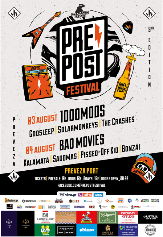 Το μεγαλύτερο εναλλακτικό φεστιβάλ της περιοχής συνεχίζει πιο δυναμικά από ποτέ για 9η συνεχή χρονιά. Το PrePost Festival μεγαλώνει και μεταφέρετε στο Λιμάνι της Πρέβεζας σε ένα μαγευτικό χώρο δίπλα στη θάλασσα. Ζήσε για δύο μέρες την εμπειρία του PrePost Festival όπου και φέτος θα φιλοξενηθούν μερικά από τα μεγαλύτερα ονόματα της εναλλακτικής μουσικής σκηνής.