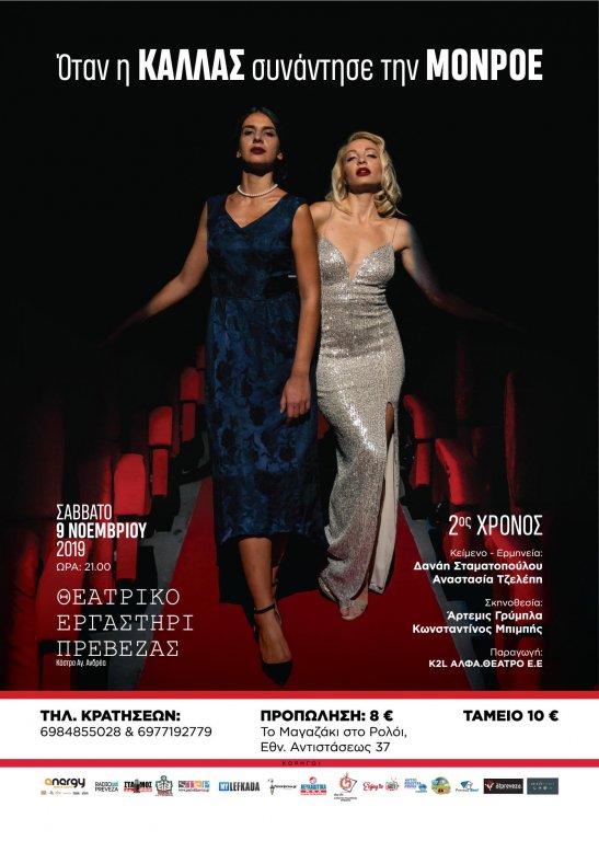 Μετά από δύο σεζόν στην Αθήνα (Θέατρο Άλφα) με μεγάλη επιτυχία, η παράσταση “Όταν η Κάλλας συνάντησε τη Μονρόε” στο πλαίσιο της περιοδεία σε επιλεγμένες πόλεις της περιφέρειας, θα παρουσιαστεί για μια μόνο παράσταση στο Θεατρικό Εργαστήρι Πρέβεζας, το Σάββατο 9 ΝΟΕΜΒΡΙΟΥ.