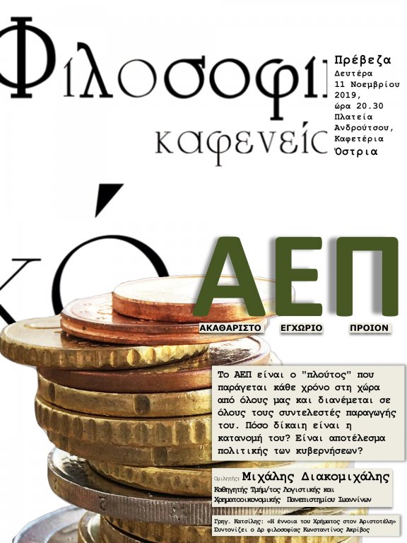Τη Δευτέρα 11 Νοεμβρίου ώρα 20.30 γίνεται συνάντηση του Φιλοσοφικού καφενείου στην πλατεία Ανδρούτσου στο καφέ Όστρια στην Πρέβεζα