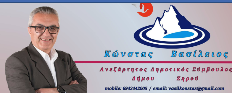 Μετά τιμής Βασίλειος Ευθ. Κώνστας Ανεξάρτητος Δημοτικός Σύμβουλος Δήμου Ζηρού |