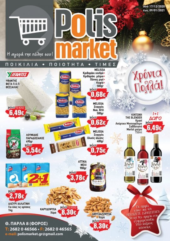 Απίστευτες Χριστουγενιάτικες προσφορές σε μια πολύ μεγάλη ποικιλία προϊόντων ξεκίνησε το POLIS MARKET στην Πρέβεζα στην οδό Θ. Πάρλα (Φόρος)