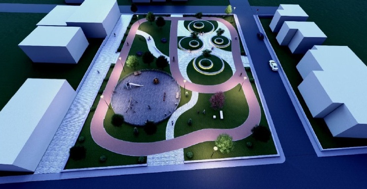 – Στην τρίτη θεματική περιοχή διαμορφώνεται ένας ελεύθερος χώρος πρασίνου τον οποίο διατρέχει διάδρομος από ειδικά διαμορφούμενο βιομηχανικό δάπεδο για παιχνίδι με ποδήλατα.