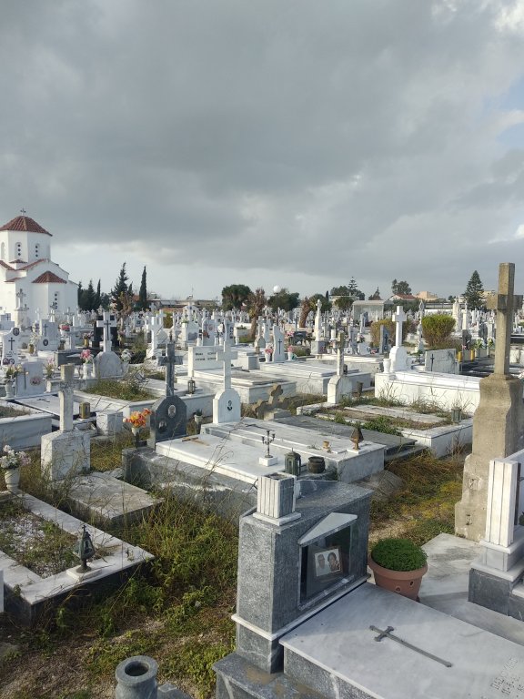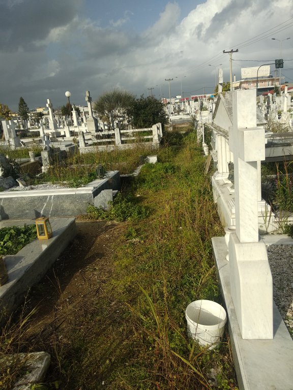 Πρώτα άρχισε ο ανελέητος διωγμός του πράσινου . Ακολούθησε η βίαιη κατάληψη κάθε ελεύθερης σπιθαμής γης. Οι επεκτάσεις , που πέρασαν από τα δικαστήρια ως παράνομες, υπερκαλύφθηκαν γοργά και αυτές . Τα πολυδιαφημιζόμενα ελάχιστα οστεοφυλάκια δεν χρησιμοποιήθηκαν ποτέ και ενώ τελείωνε το οξυγόνο του νεκροταφείου και ο τόπος των νεκρών έπαιρνε την θλιβερή εικόνα των στοιβαγμένων τάφων σε ένα κατάξερο και αποκρουστικό τοπίο, η κάθε Δημοτική Αρχή με μία κοντόθωρη , στρουθοκαμηλική, εγωιστική και ανεύθυνη πολιτική στάση παρέδιδε το πρόβλημα , με χαιρέκακη ανακούφιση, στην επόμενη.