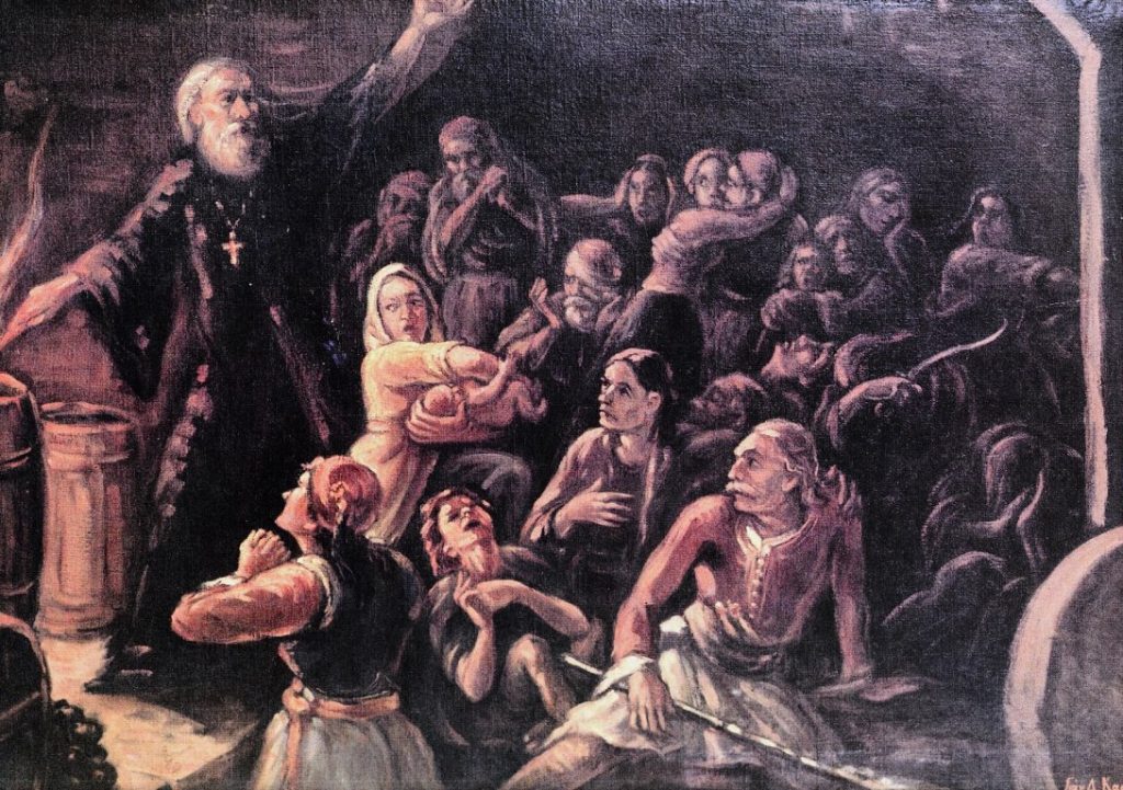 Ανάμεσα στα συντρίμμια οι εισβολείς βρίσκουν μισοζώντανο τον Επίσκοπο και αφού τον βασάνισαν τον κρεμάσανε ξεψυχώντας μαρτυρικά, (+13/04/1826).