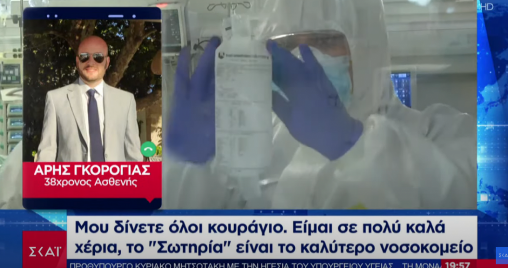 Ο Άρης που σχολιάζει και στο facebook όσοι βγαίνουν από την εντατική και δίνει σε όλους θάρρος νοσηλεύεται στο νοσοκομείο “Σωτηρία” μίλησε στον τηλεοπτικό σταθμό “ΣΚΑΪ”