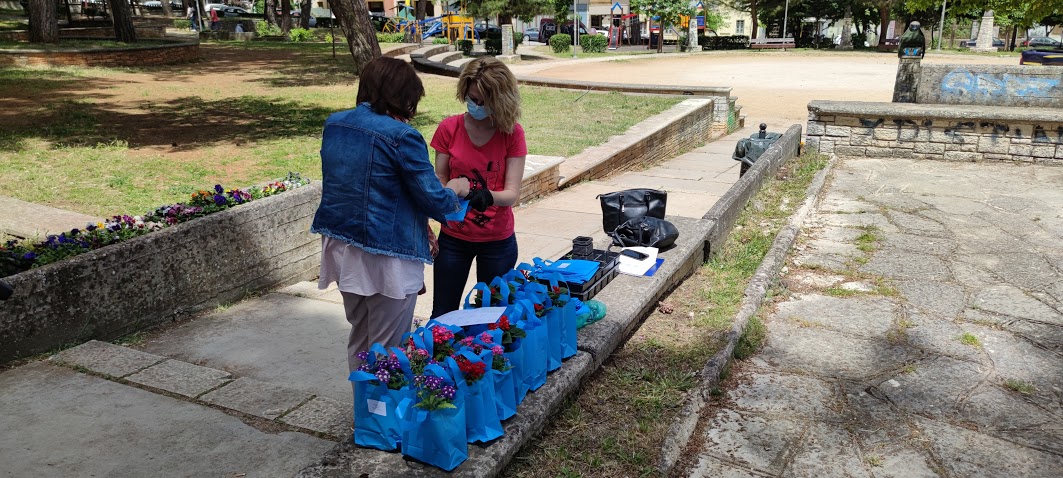 Με αφορμή την επίσκεψη και τις εργασίες αναβάθμισης του χώρου διένειμαν γλάστρες με λουλούδια και σακούλες ανακύκλωσης στους μαθητές του 2ου Νηπιαγωγείου που λειτουργεί στον ίδιο χώρο.