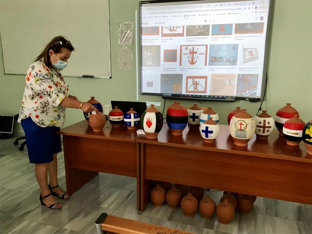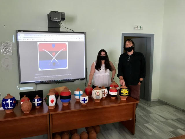 και αποτυπώνει τις σημαίες-λάβαρα της ελληνικής Επανάστασης, στο πλαίσιο του μαθήματος Κοινωνικού Γραμματισμού, με υπεύθυνη καθηγήτρια την υποδιευθύντρια του σχολείου κ. Μπάρκα Χρυσάνθη.