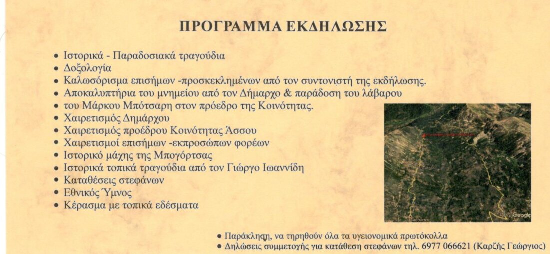 Σας προσκαλούμε στην εκδήλωση των αποκαλυπτηρίων ΜΝΗΜΕΙΟ για τη μάχη της Μπογόρτσας. Θα πραγματοποιηθεί στην Κοινότητα Άσσου την Κυριακή 29 Αυγούστου και ώρα 6.00 μ.μ.