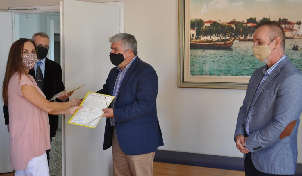 Σε μια λιτή αλλά γεμάτη χαρά και αισιοδοξία τελετή, τη Δευτέρα 4 Οκτωβρίου το μεσημέρι στην αίθουσα του Δημοτικού Συμβουλίου, ο Δήμαρχος Πρέβεζας κ.Νίκος Γεωργάκος, παρουσία του Εντεταλμένου Δημοτικού Συμβούλου για το Δημοτικό Ωδείο κ.Λεωνίδα Αργυρού, του Διευθυντή και Καθηγητών του Δημοτικού Ωδείου Πρέβεζας «Σπύρος Δήμας», απένειμε τους επίσημους κρατικούς τίτλους σπουδών, στους απόφοιτους του Δημοτικού Ωδείου.