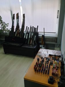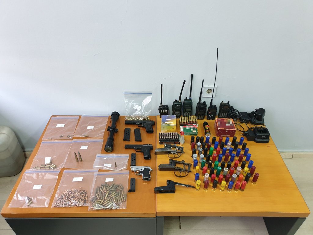 Κατασχέθηκαν -μεταξύ άλλων- υλικοτεχνικός εξοπλισμός, πυροβόλα όπλα, πλήθος φυσιγγίων και φορητοί πομποδέκτες