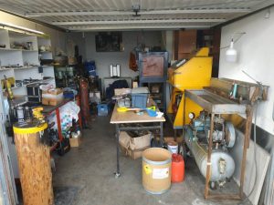 Στο πλαίσιο της έρευνας διαπιστώθηκε ότι σε κλειστό χώρο στάθμευσης του σπιτιού του, διατηρούσε παράνομο εργαστήριο επισκευής όπλων και γόμωσης-αναγόμωσης φυσιγγίων, έχοντας εγκαταστήσει για το σκοπό αυτό κατάλληλο υλικοτεχνικό εξοπλισμό, που κατασχέθηκε, αποτελούμενο από: