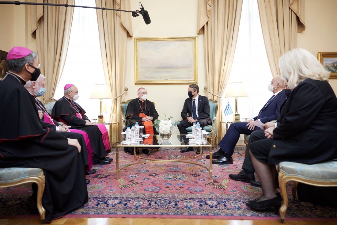 Νωρίτερα ο Κυριάκος Μητσοτάκης συναντήθηκε με τον Γραμματέα του Κράτους της Αγίας Έδρας (Πρωθυπουργό), Καρδινάλιο Pietro Parolin.