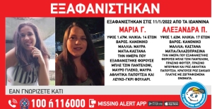 Το βράδυ της Τρίτης από το «Χαμόγελο του Παιδιού» σήμανε missing alert για τα δύο κορίτσια. Πρόκειται για τη Μαρία Γ., 14 ετών και την Αλεξάνδρα Π., 17 ετών.
