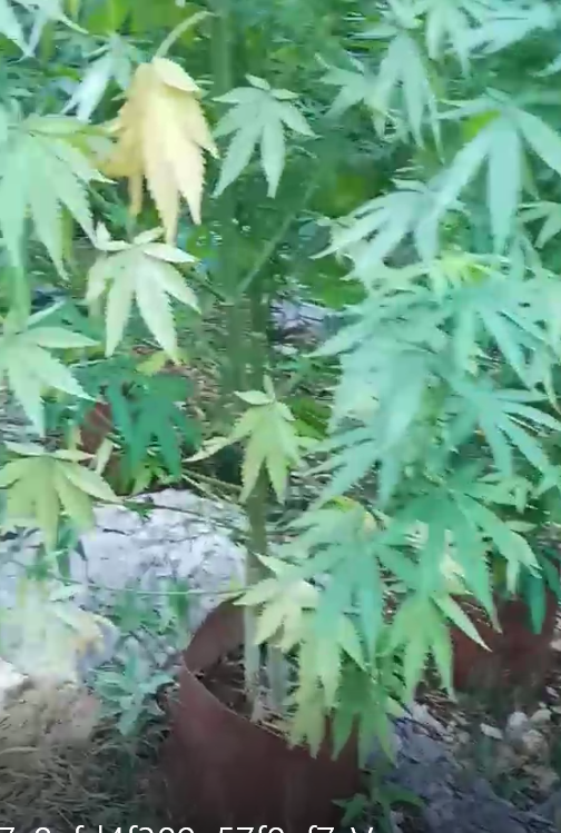 Στις εικόνες φαίνονται φυτά κάνναβης που έχουν φυτευτεί σε γλάστρες.