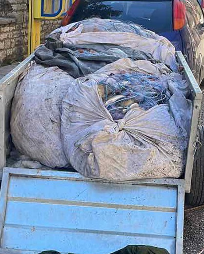 τεμάχια διχτυών, τα οποία περιείχαν πλήθος ψαριών, πρόσφατα αλιευμένα,