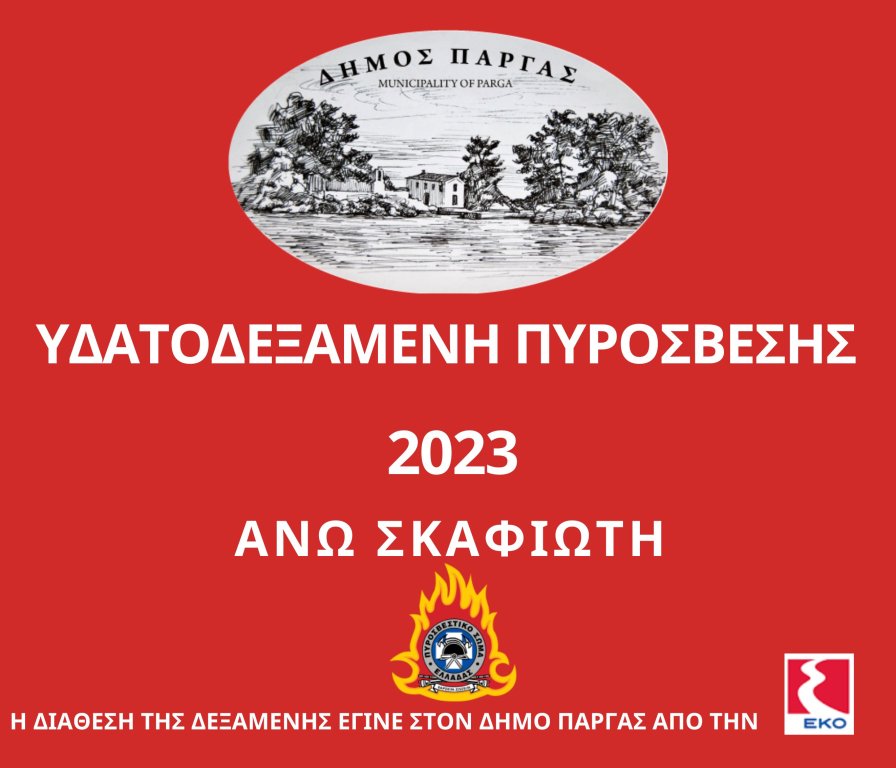 Ο Δήμος Πάργας εγκατέστησε μια νέα υδατοδεξαμενή πυρόσβεσής στην Άνω Σκαφιδωτή που αποσκοπεί στον άμεσο ανεφοδιασμό των οχημάτων πυρόσβεσης. Στις επόμενές ημέρες θα εγκατασταθεί άλλη μια Αγιά σε σημείο που έχει υποδείξει η Πυροσβεστική Υπηρεσία Πάργας, που είναι αρμόδια για τον έλεγχο και τον σχεδιασμό των σημείων ανεφοδιασμού των πυροσβεστικών οχημάτων.