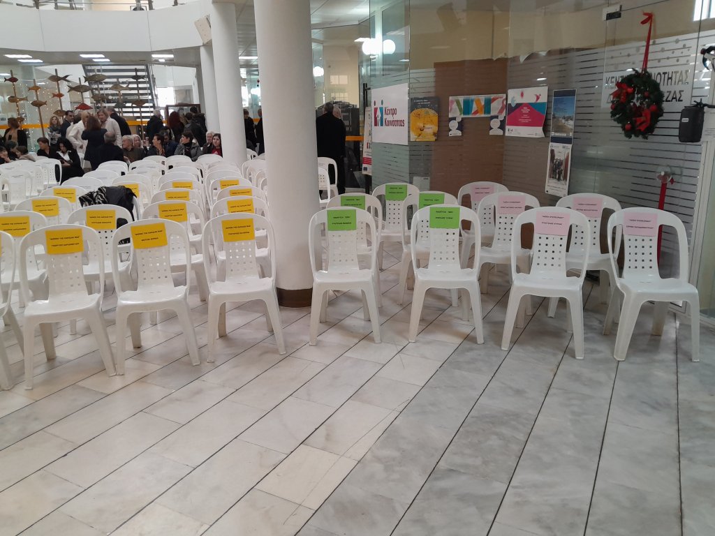 Στον χώρο του πνευματικού κέντρου του Δήμου Πρέβεζας είχε γίνει ταξινόμηση των θέσεων των νέων Δημοτικών συμβούλων ανάλογα με τις παρατάξεις που θύμισε… βουλή. Στα κίτρινα καρεκλάκια, ήταν η παράταξη “δήμος της Καρδιάς μας” στα πράσινα η “Ανάπτυξη τώρα” και στα ροζ η “Λαϊκή Συσπείρωση”.