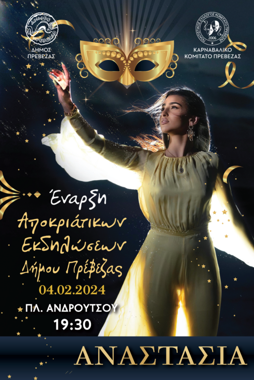 Το τελετουργικό της επίσημης έναρξης του Καρναβαλιού από το Καρναβαλικό Κομιτάτο θα πραγματοποιηθεί στην πλατεία δικαστηρίων στην Πρέβεζας και με την ολοκλήρωσή του θα δοθεί η συνέχεια πιο δίπλα, στην πλατεία Ανδρούτσου με τη συναυλία της τραγουδίστριας “Αναστασία” την οποία εξασφάλισε για την τελετή έναρξης ο Δήμος Πρέβεζας.