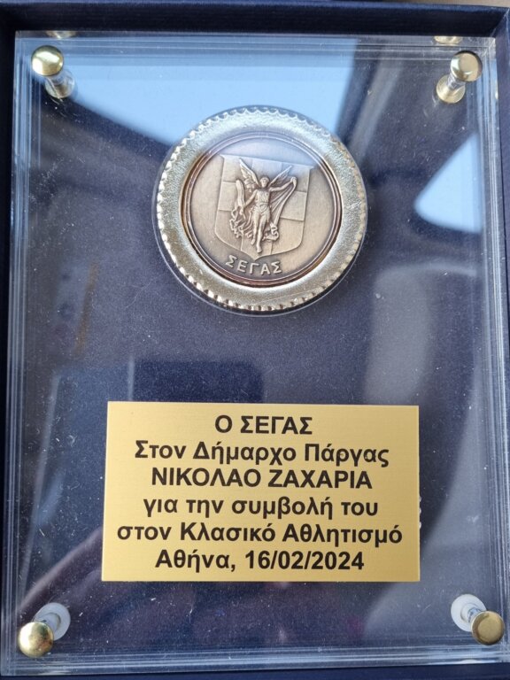 Στην ετήσια συνάντηση των κορυφαίων αθλητών και αθλητριών του ΣΕΓΑΣ τιμήθηκε ο Δήμος Πάργας, για την συνεισφορά του στην προώθηση του κλασικού αθλητισμού με το βραβείο να παραλαμβάνει ο Δήμαρχος Πάργας Νίκος Ζαχαριάς.