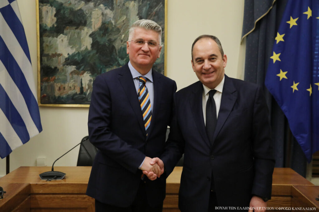 Για την δυνατότητα βελτίωσης του κλίματος μεταξύ Ελλάδος και Αλβανίας, τη λήψη μέτρων για εξασφάλιση των δικαιωμάτων της ελληνικής εθνικής μειονότητας, το σεβασμό στις αρχές του κράτους δικαίου και των ανθρωπίνων δικαιωμάτων, καθώς και την αποφυγή οποιασδήποτε υποκίνησης εχθρικών αισθημάτων μεταξύ των δυο λαών, έκανε λόγο, μεταξύ άλλων, ο Α ´ Αντιπρόεδρος της Βουλής, κ. Ιωάννης Πλακιωτάκης σε συνάντηση, που είχε με τον Αντιπρόεδρο του Κοινοβουλίου της Αλβανίας, κ. Agron Gjekmarkaj.