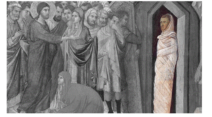 Έτσι με αυτή την καθυστέρηση του ταξιδιού, όταν ο Χριστός με τους μαθητές έφτασε στη Βηθανία, ο Λάζαρος βρισκόταν για τέταρτη ημέρα νεκρός στο μνήμα. Συνάντησε τις αδερφές του, Μάρθα και Μαρία, οι οποίες έτρεξαν να τον συναντήσουν. Και οι δύο του είπαν ότι «αν ήσουν εδώ δεν θα πέθαινε ο αδερφός μου» με τον Χριστό να απαντά ότι «Ο αδερφός σου θα αναστηθεί» και ότι «Εγώ είμαι η Ανάσταση και η Ζωή».