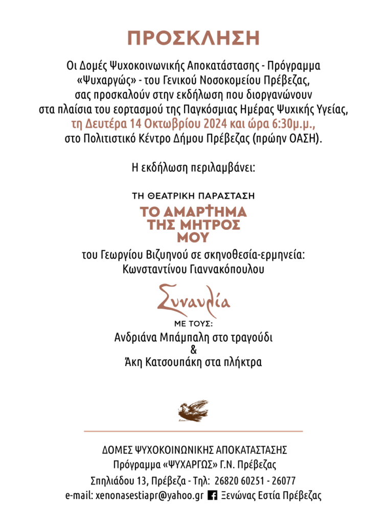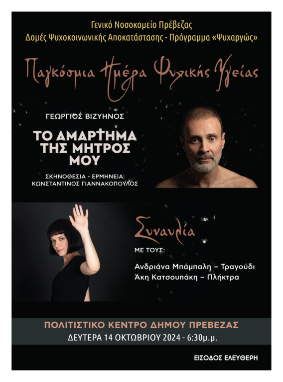 Ετικέτες: "Ψυχαργώς", Εκδήλωση, ΗΜΕΡΑ, Παγκόσμια, Πρέβεζα, υγείας, ψυχικής