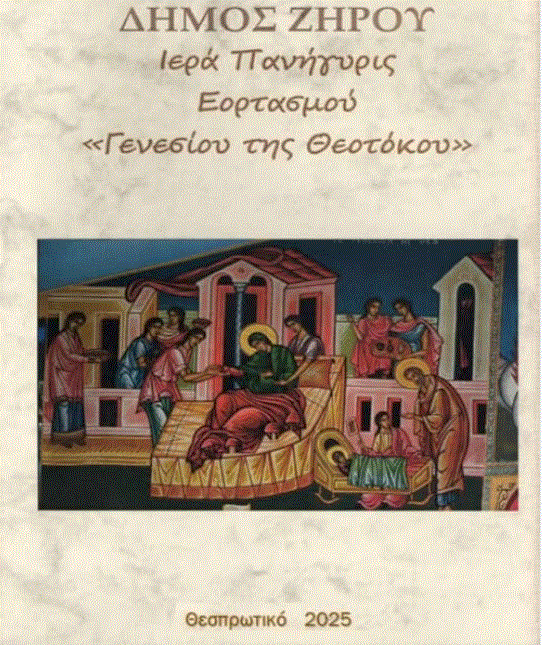 Σας προσκαλούμε, όπως τιμήσετε με την παρουσία σας τις εκδηλώσεις εορτασμού του Ι.Ν. Γενεσίου της Θεοτόκου στο Θεσπρωτικό στις 7 & 8 Σεπτεμβρίου 2025.