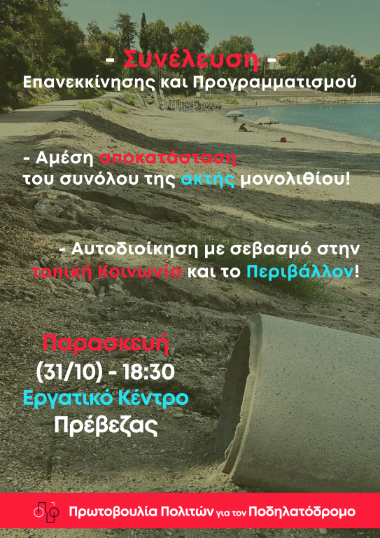 Σας περιμένουμε όλες και όλους την Παρασκευή 31 Οκτωβρίου στις 18:30 στο Εργατικό Κέντρο Πρέβεζας προκειμένου να συναποφασίσουμε τις δράσεις μας από δω και πέρα μέχρι την πλήρη δικαίωση.”