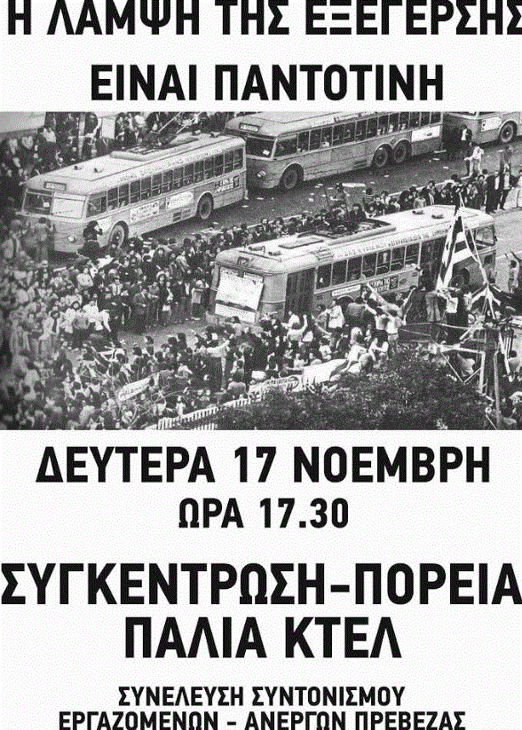 Συνέλευση συντονισμού εργαζομένων-ανέργων Πρέβεζας: Πολυτεχνείο: Διαχρονικό το άρωμα της εξέγερσης