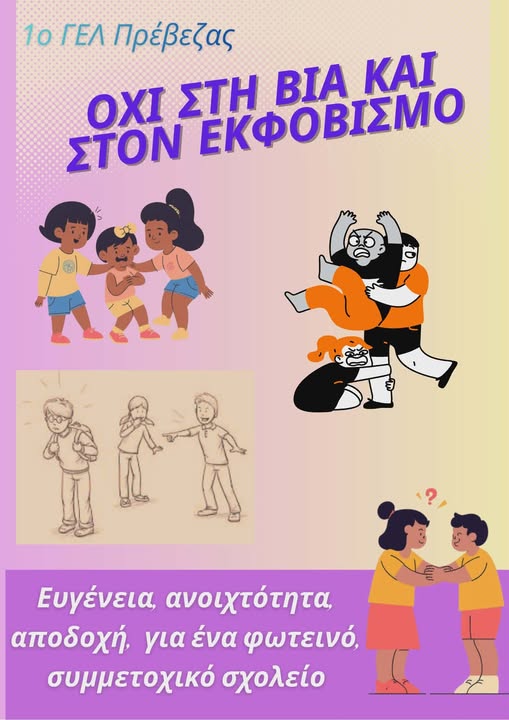 Συμμετοχή του/της 1ου ΓΕ.Λ. Πρέβεζας στην Πανελλήνια Σχολική Δράση: «Μπαίνω στη θέση του άλλου και λέω όχι στη βία και στον εκφοβισμό»