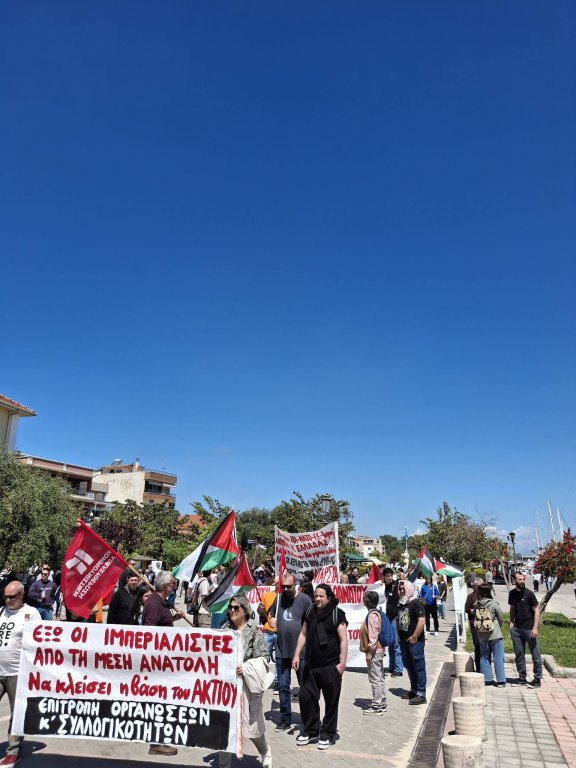 Τη Κυριακή 26/4 πραγματοποιήθηκε αντιπολεμικό αντιιμπεριαλιστικό συλλαλητήριο στη βάση του ΑΚΤΙΟΥ από οργανώσεις της εξωκοινοβουλευτικής αριστεράς αλλά και συλλογικότητες της περιοχής ( περιφερειακές-δημοτικές κινήσεις, στέκια , κινήσεις αντιρατσιστικές και αλληλεγγύης). Την ίδια ώρα πραγματοποιήθηκε και συγκέντρωση στη βάση του ΑΡΑΞΟΥ. Την ίδια μέρα πραγματοποιήθηκε μεγάλη συναυλία στην Αθήνα (προπύλαια) για τον νέο απόπλου του στόλου της Ελευθερίας για τη Γάζα ενώ την προηγούμενη ημέρα πραγματοποιήθηκε συλλαλητήριο και στη Θεσσαλονίκη .