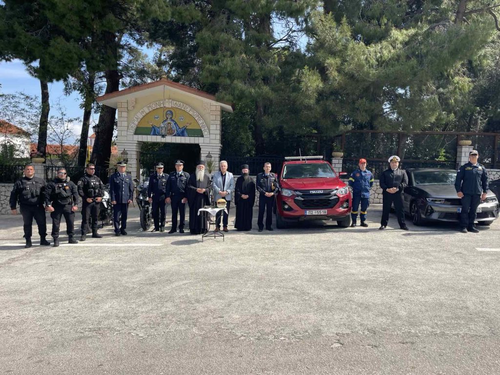Στον αγιασμό των μέσων που εξασφαλίστηκαν και παραδόθηκαν το προηγούμενο διάστημα στα Σώματα Ασφαλείας της Λευκάδας παρέστη την προηγούμενη Δευτέρα ο Υφυπουργός Αγροτικής Ανάπτυξης και Τροφίμων, Βουλευτής Ν.Λευκάδας, Θανάσης Καββαδάς. Πρόκειται συγκεκριμένα για 3 μοτοσυκλέτες για την Αστυνομική Διεύθυνση Λευκάδας, ένα περιπολικό όχημα για το Λιμενικό Σώμα και ένα όχημα 4×4 για το Πυροσβεστικό Σώμα.