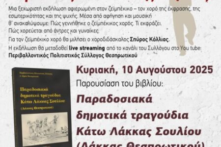 Περιβαλλοντικός Πολιτιστικός Σύλλογος Θεσπρωτικού-εκδήλωση: “Ζεϊμπέκικο ο χορός της αλήθειας”