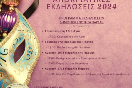 Πρόγραμμα αποκριάτικων εκδηλώσεων 2024 στον Δήμο Πάργας