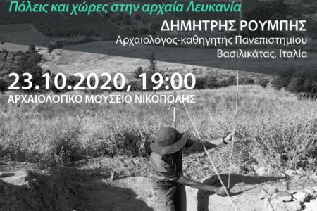Η Εφορεία Αρχαιοτήτων Πρέβεζας σας ενημερώνει ότι την Παρασκευή, 23.10.2020, ώρα 19:00μμ. θα πραγματοποιηθεί στο Αρχαιολογικό Μουσείο Νικόπολης εκδήλωση αφιερωμένη στη Μεγάλη Ελλάδα […]