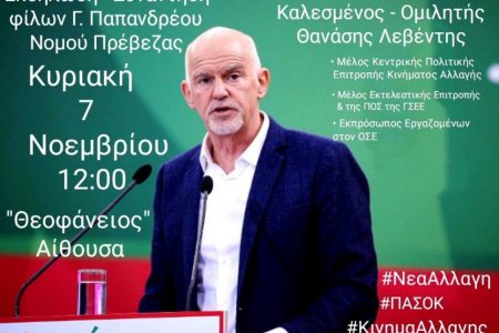 Συνάντηση φίλων Γιώργου Παπανδρέου Νομού Πρέβεζας θα πραγματοποιηθεί , την Κυριακή 7 Νοεμβρίου 2021, ώρα 12.00′ το μεσημέρι, στη Θεοφάνειο Αίθουσα Τέχνης στην παραλία της […]