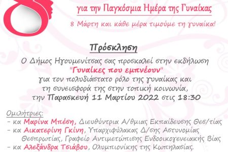 Δήμος Ηγουμενίτσας: Εκδήλωση με θέμα «Γυναίκες που εμπνέουν»