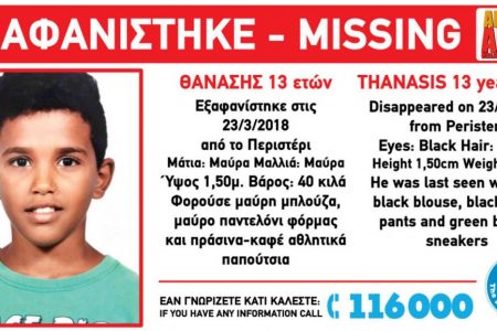 Ο Θανάσης Σ., 13 ετών, δεν έχει ακόμα εντοπιστεί παρά το γεγονός ότι οι ενέργειες αναζήτησής του συνεχίζονται. Αναμένουμε από τις Αστυνομικές […]