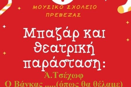 Διαβάστε περισσότεραΜουσικό σχολείο Πρέβεζας : Μπαζάρ και θεατρική παράσταση : Α. Τσέχωφ Ο Βάνκας… “όπως θα θέλαμε”