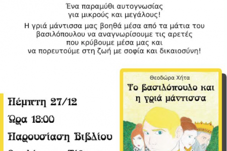 Η συγγραφέας του βιβλίου «Το βασιλόπουλο και η γριά μάντισσα» Θεοδώρα Χήτα σας προσκαλεί στην παρουσίαση που θα γίνει στην Πρέβεζα την […]