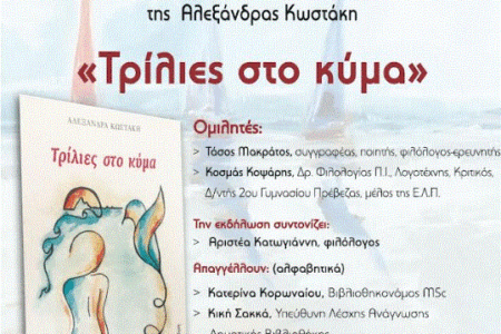 Διαβάστε περισσότεραΈνωση Λογοτεχνών Πρέβεζας: Παρουσίαση της νέας ποιητικής συλλογής «Τρίλιες στο κύμα» της Αλεξάνδρας Κωστάκη