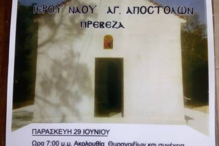 Διαβάστε περισσότεραΣυγχαρητήρια !!! ΠΑΝΗΓΥΡΙΣ ΚΑΙ ΘΥΡΑΝΟΙΞΙΑ ΤΟΥ ΙΕΡΟΥ ΝΑΟΥ ΤΩΝ ΑΓΙΩΝ ΑΠΟΣΤΟΛΩΝ ΣΤΗΝ ΠΡΕΒΕΖΑ