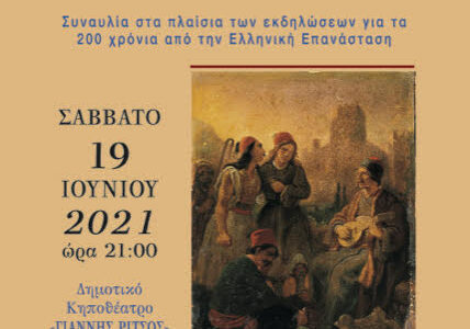 Με ένα μοναδικό αφιέρωμα στα 200 χρόνια από την Επανάσταση του 1821 το Δημοτικό Ωδείο Πρέβεζας “Σπύρος Δήμας”, σε συνεργασία με τον Δήμο και την […]