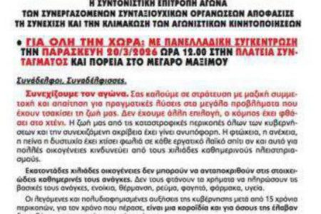 ΟΛΟΙ ΟΛΕΣ ΣΤΟ ΠΑΝΕΚΠΑΙΔΕΥΤΙΚΟ ΣΥΛΛΑΛΗΤΗΡΙΟ ΠΑΡΑΣΚΕΥΗ 20 ΜΑΡΤΙΟΥ ΣΤΙΣ 7μμ ΣΤΑ ΔΙΚΑΣΤΗΡΙΑ Τα μεγάλα κτιριακά προβλήματα των σχολείων μας είναι εδώ! Απαιτούμε σύγχρονα και […]